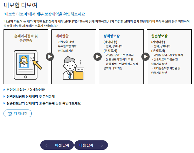 이럴 때는 보험 통합 조회 서비스를 이용하면 현재 가입 중인 운전자보험과 주요 담보를 한 번에 확인할 수 있습니다.
