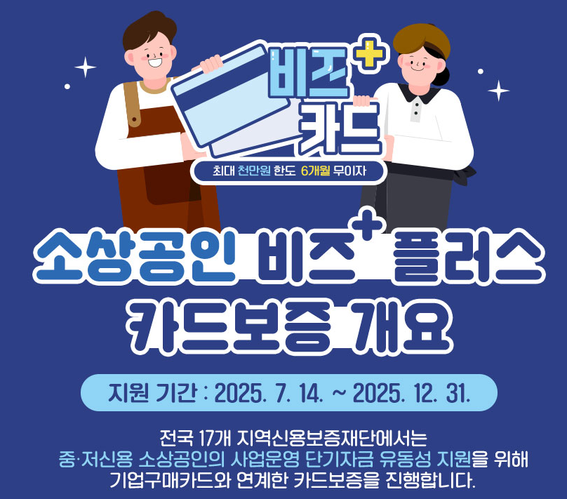 정부가 소상공인의 금융 부담을 덜어주기 위해 운영 중인 ‘비즈플러스카드’ 제도가 한층 확대됩니다. 기존에는 신용점수가 낮아 시중 금융사에서 신용카드를 발급받기 어려운 소상공인 중심으로 지원됐는데, 앞으로는 신용이 좋은 사업자도 혜택을 받을 수 있게 되었습니다. 특히 한도는 최대 1,000만 원으로 설정되어 있어 사업 운영 자금이 필요한 소상공인들에게 큰 도움이 될 전망입니다. 아래 글에서 소상공인 비즈플러스카드 소상공인 자영업자 운영자금 최대 1천만원 한도 내용 알아보겠습니다.