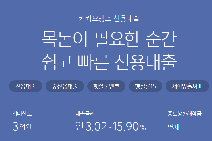 카카오뱅크 신용대출 신청 자격