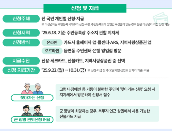 지원금은 선불카드 형태로 발급받을 수 있으며, 지정된 사용처에서만 사용할 수 있다는 점이 특징입니다.