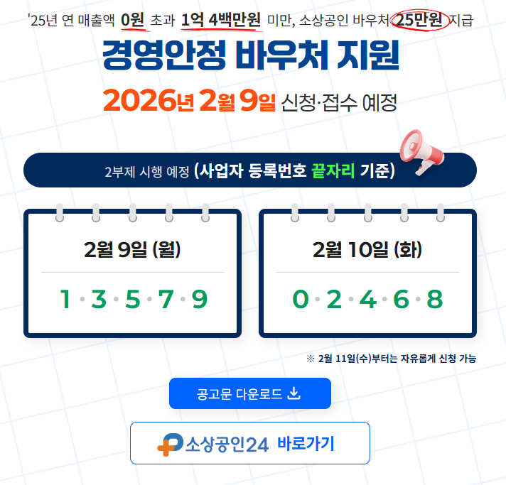 2026년 소상공인 바우처 25만원 신청 방법, 경감크레딧 지원금 대상 홈페이지 등록 방법